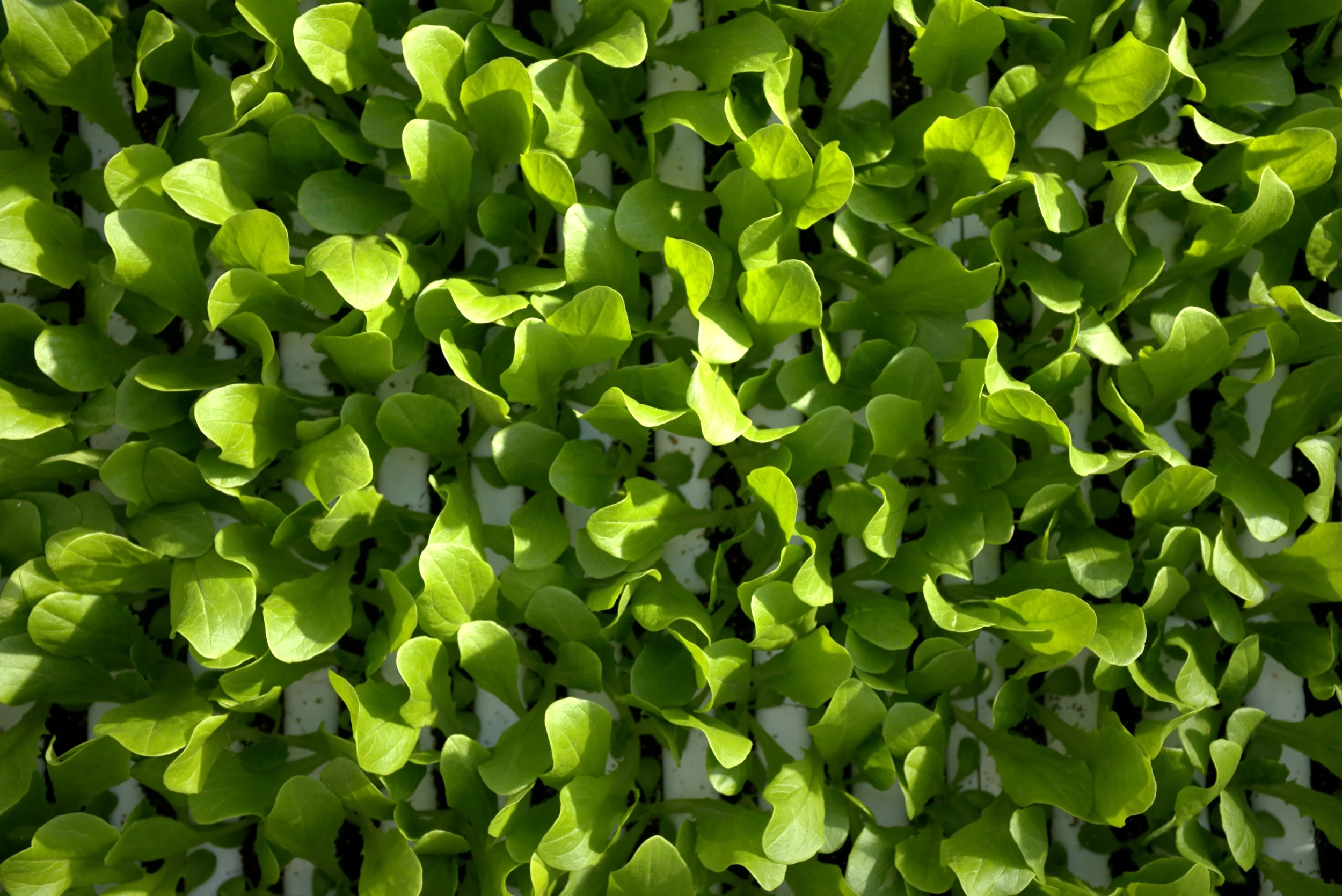 Above: A close-up view of vibrant greens thriving in a controlled greenhouse environment.